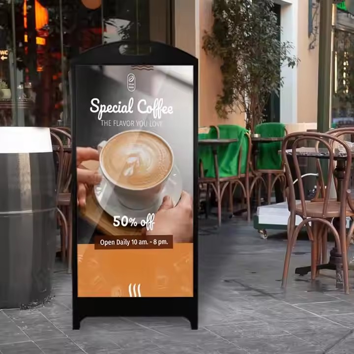 The latest LED A-type poster, product highlights: lightweight, weighing only about 30 buses, it is the lightest among outdoor portable products, which undoubtedly provides better help for use. It has a brightness of 4500 nits, and the effect is great, with a battery life of up to 8-10 hours.