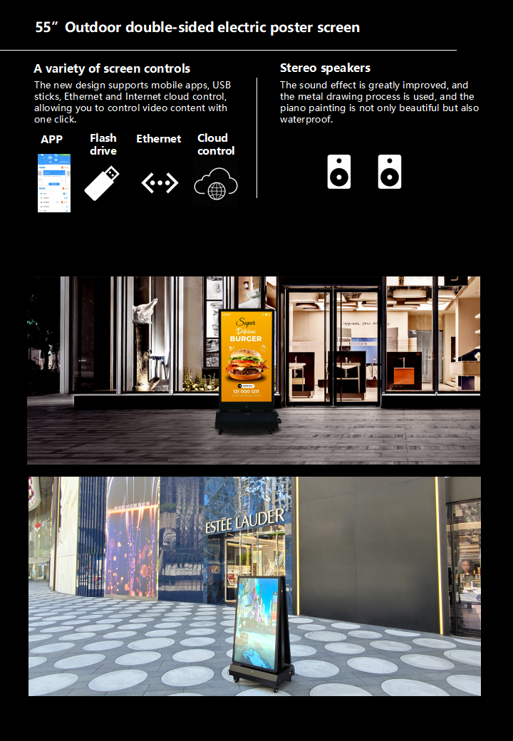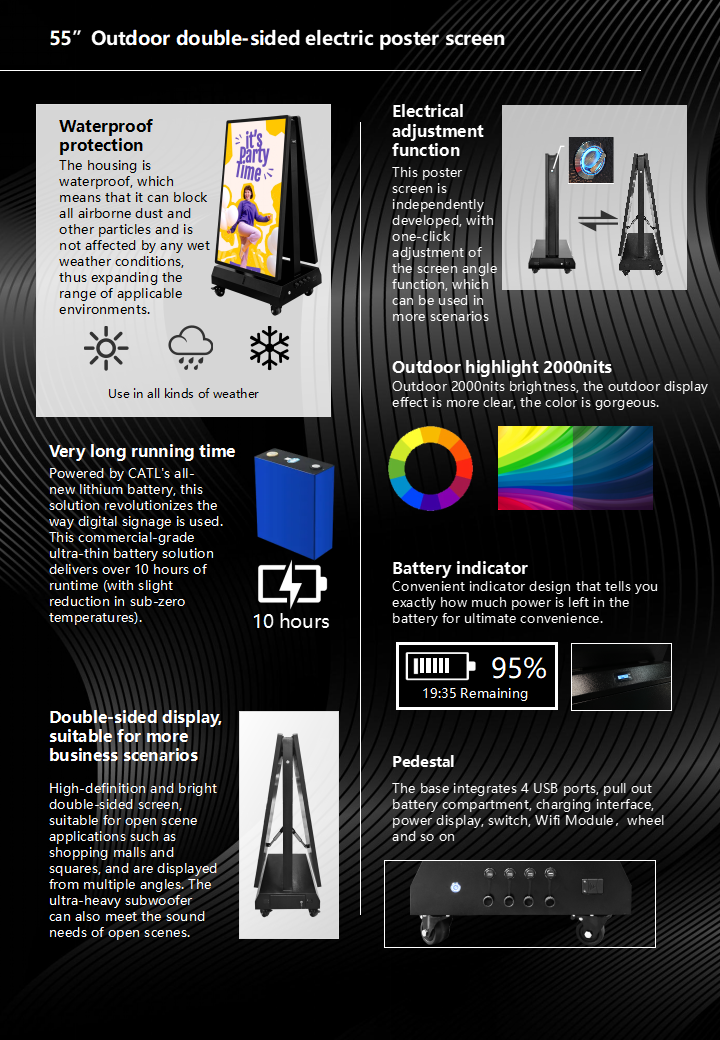 55 Inch outdoor Lithium battery double-sided electric poster