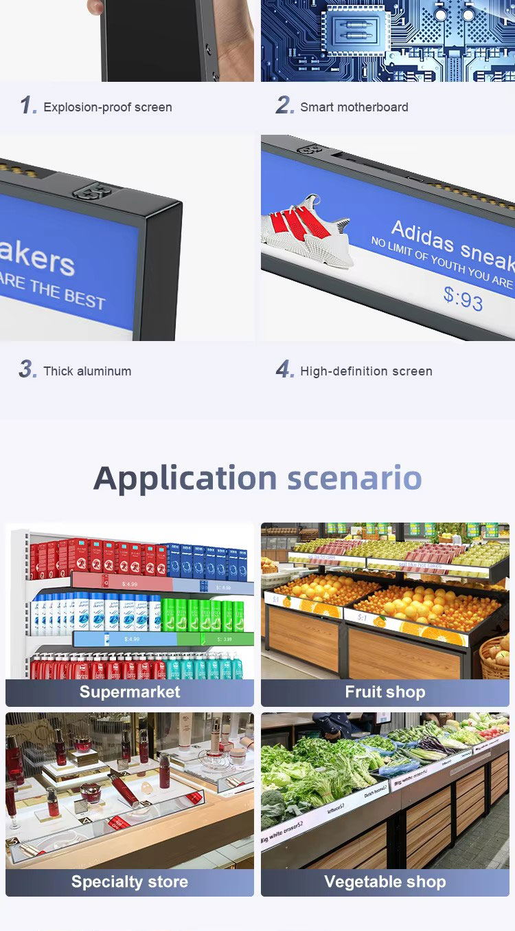 Multi-size selection, LCD high-definition high-gloss panel, good display effect, cloud publishing system supports multiple publishing methods,